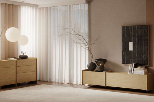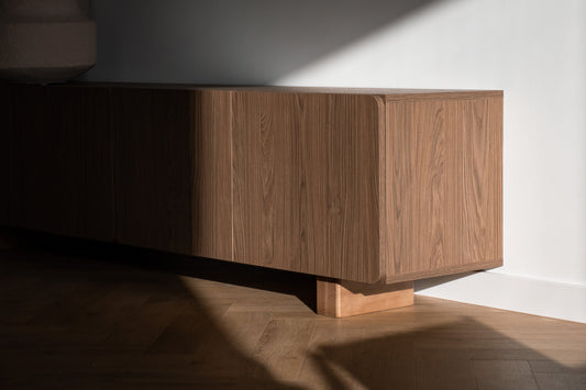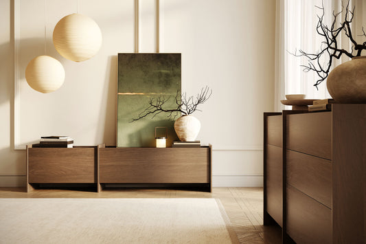 Die Einrichtung des Wohnbereichs ist nicht nur eine Frage des Komforts, sondern vor allem der stimmigen Innenarchitektur und der Aufbewahrungsmöglichkeiten. Deshalb bilden unsere Kastenmöbel für das Wohnzimmer wie Kommoden und TV-Möbel den visuellen Rahmen für den gesamten Raum und bringen Rhythmus sowie geometrische Ordnung hinein. Entdecke Formen, die das Verständnis von modernem Stauraum neu definieren. Anstatt den Raum zu überladen, werden unsere Kommoden und Schränke zu einem eleganten Hintergrund für das tägliche Leben. Hier harmoniert jedes Element perfekt mit dem anderen, sodass du ganz leicht ein Interieur gestalten kannst, von dem du träumst.