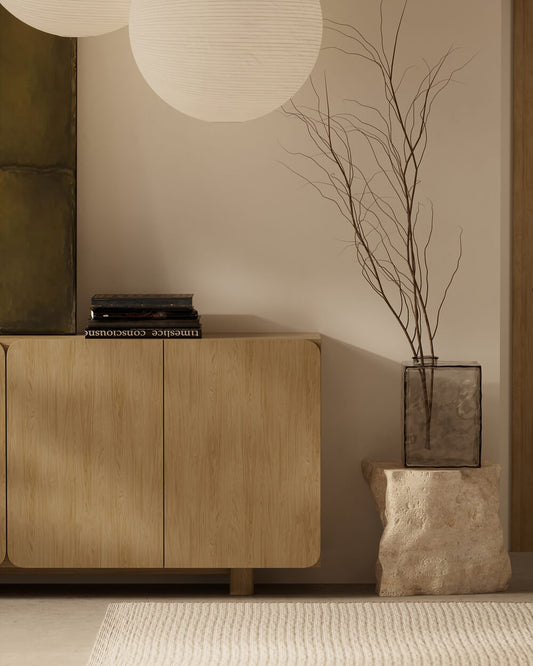 Bei Mitto Home wissen wir genau, wie wichtig ein Gefühl von Großzügigkeit ist, deshalb kämpfen wir in unseren Projekten um jeden Zentimeter sichtbaren Bodens. Kommoden auf Füßen sind eine Antwort darauf – schlanke Beine verleihen massiveren Formen eine erstaunliche Leichtigkeit und sorgen dafür, dass Aufbewahrungsmöbel fast zu schweben scheinen. Diese Lösung ist nicht nur ästhetisch, sondern auch besonders praktisch, da sie Saugrobotern die Arbeit erleichtert und hilft, in jeder Ecke makellose Sauberkeit zu bewahren.